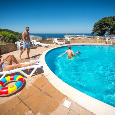 Sandaway Beach Holiday Park stands on a cliffs edge at the very edge of the ocean with breath-taking sea views. A stepped path leads you to Sandaway’s private ‘Mermaid’s Cove’ beach. The cove has a rocky foreshore and sprinkling of sand and is the perfect spot for fishing in rock pools, spotting the passing boats and maybe even a dolphin! Return from the beach and take a dip in our superb outdoor swimming pool with toddler area, or relax with a drink and something to eat in our Smuggler’s Bar and take in the incredible views. In this setting, you’ll soon find the daily pressures melt away.